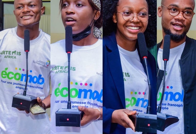 En partenariat avec l'Organisation Internationale de la Francophonie (OIF), ce projet a mobilisé plus de 100 jeunes à Kinshasa autour de la collecte, du tri et de la valorisation des déchets plastiques, métalliques et organiques. Plus de 400 kg de déchets collectés, 6 millions de personnes sensibilisées via radio et réseaux sociaux, et développement de solutions innovantes : vermicomposteurs, jardins verticaux, objets recyclés et foyers améliorés.